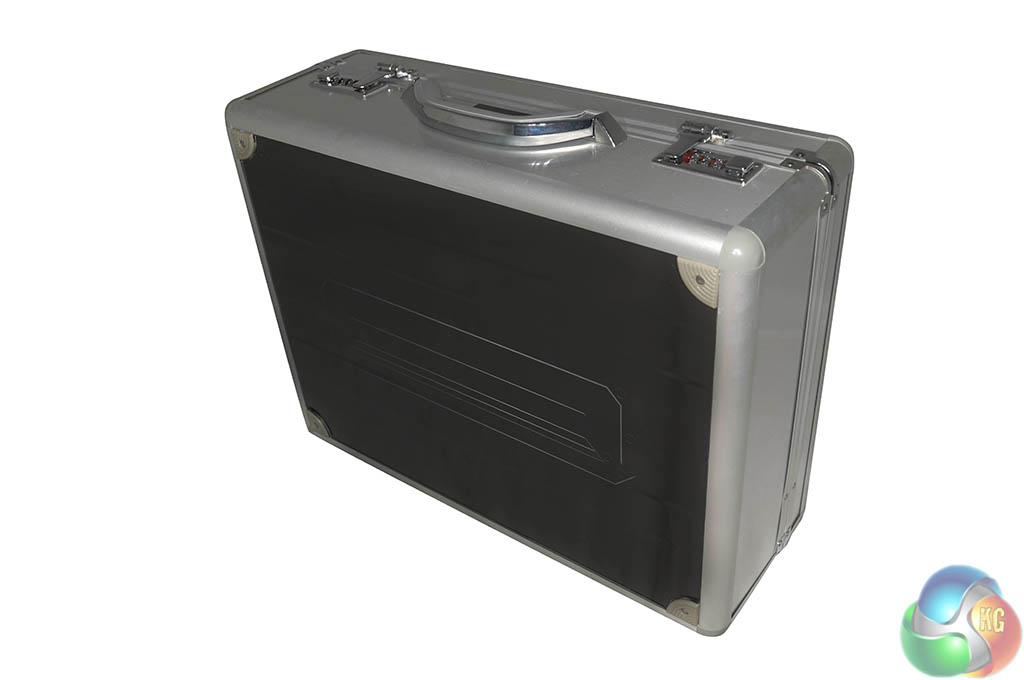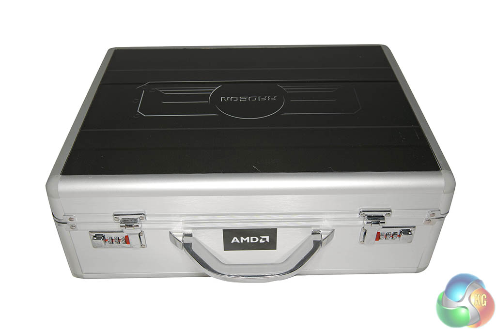 The AMD R9 295 X2 arrives in a sexy silver flight case with AMD branded stickers and side panels.