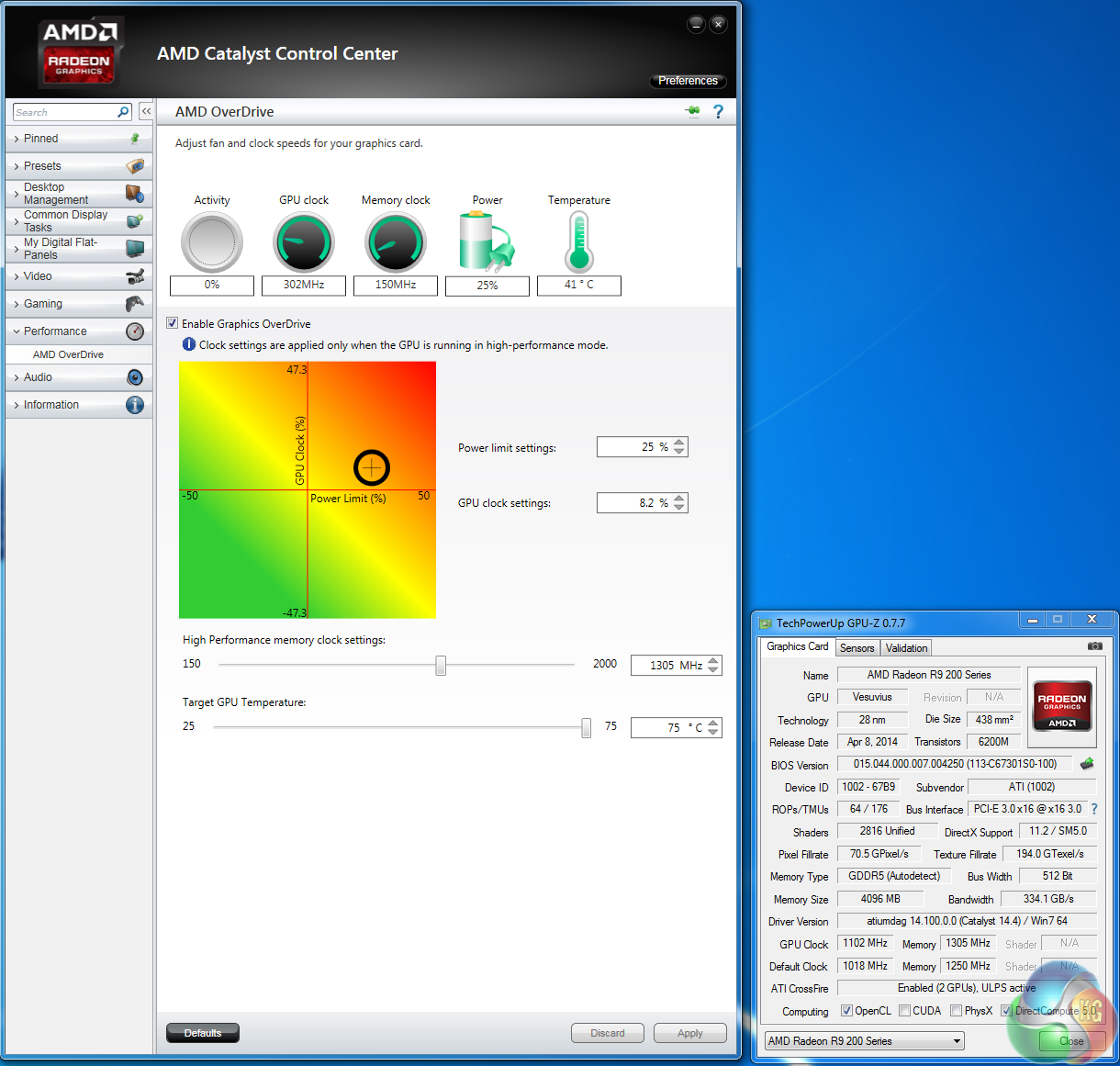 To overclock the R9 295X2 today, we use Catalyst Control Center with the latest beta drivers specifically designed for the hardware.