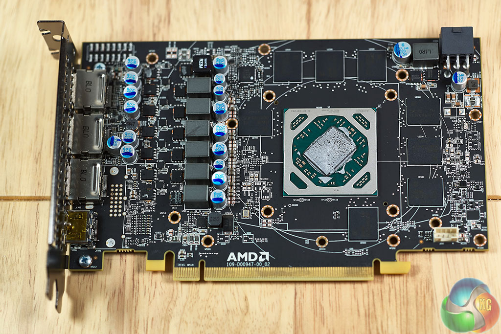 No backplate on the AMD RX 480 reference card, but perhaps custom models from AMD partners will include one. We can see the PCB length is very small, with the cooler intake actually extending the length of the GPU.
