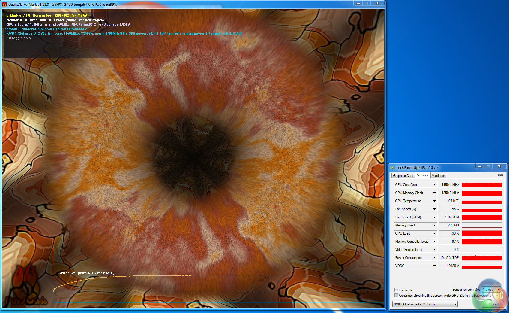 The tests were performed in a controlled air conditioned room with temperatures maintained at a constant 24c – a comfortable environment for the majority of people reading this.Idle temperatures were measured after sitting at the desktop for 30 minutes. Load measurements were acquired by playing Crysis Warhead for 30 minutes and measuring the peak temperature. We also have included Furmark results, recording maximum temperatures throughout a 30 minute stress test. All fan settings were left on automatic.