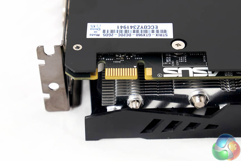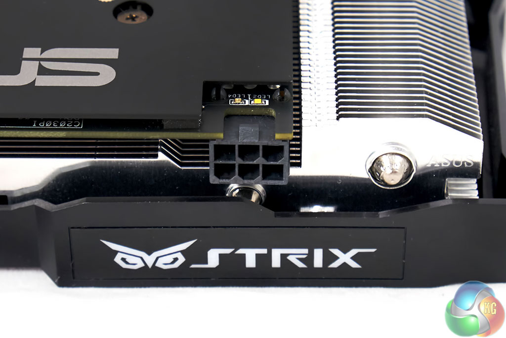 The Asus GTX960 Strix OC Edition takes power from a single 6 pin power connector, adhering to Nvidia's reference design.