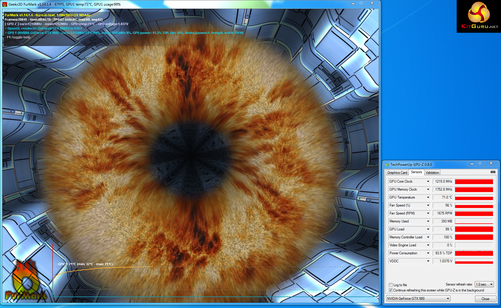The tests were performed in a controlled air conditioned room with temperatures maintained at a constant 23c – a comfortable environment for the majority of people reading this.Idle temperatures were measured after sitting at the desktop for 30 minutes. Load measurements were acquired by playing Crysis Warhead for 30 minutes and measuring the peak temperature. We also have included Furmark results, recording maximum temperatures throughout a 30 minute stress test. All fan settings were left on automatic.