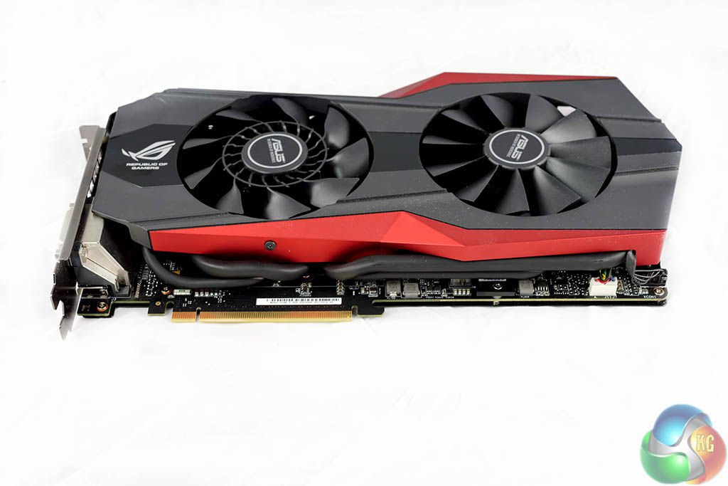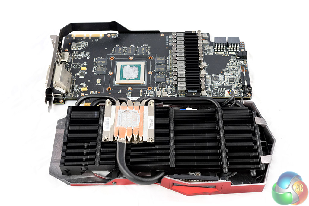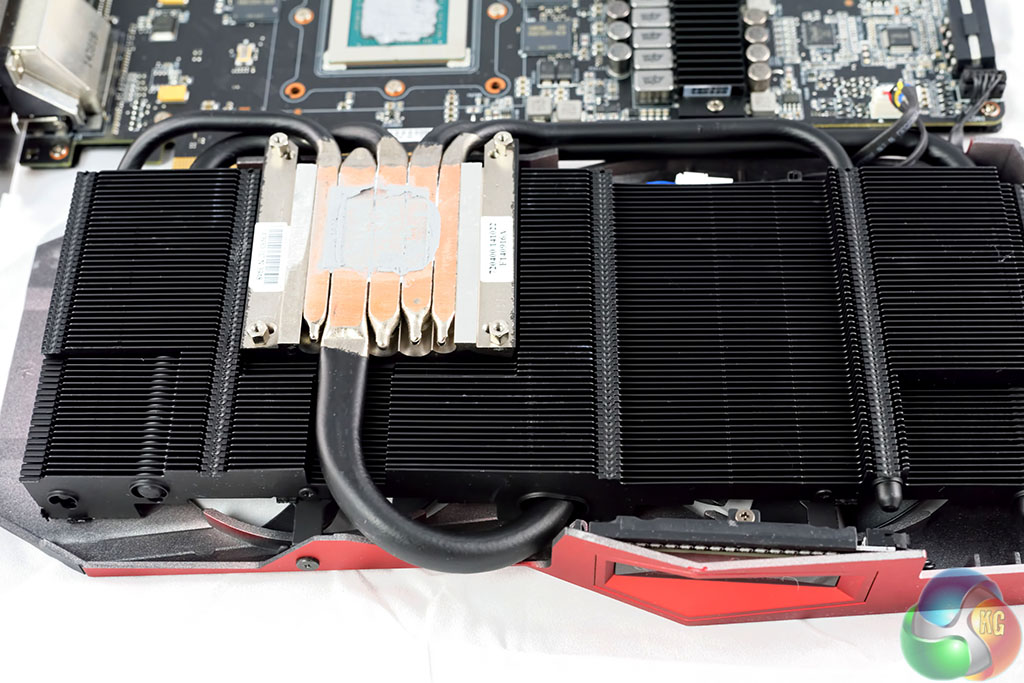 Asus are using thick 10mm nickel plated heatpipes on the cooler, all of which are coloured black to improve the appearance. Asus have opted to use high grade Samsung GDDR5 memory on the ROG board, which is reassuring to see.