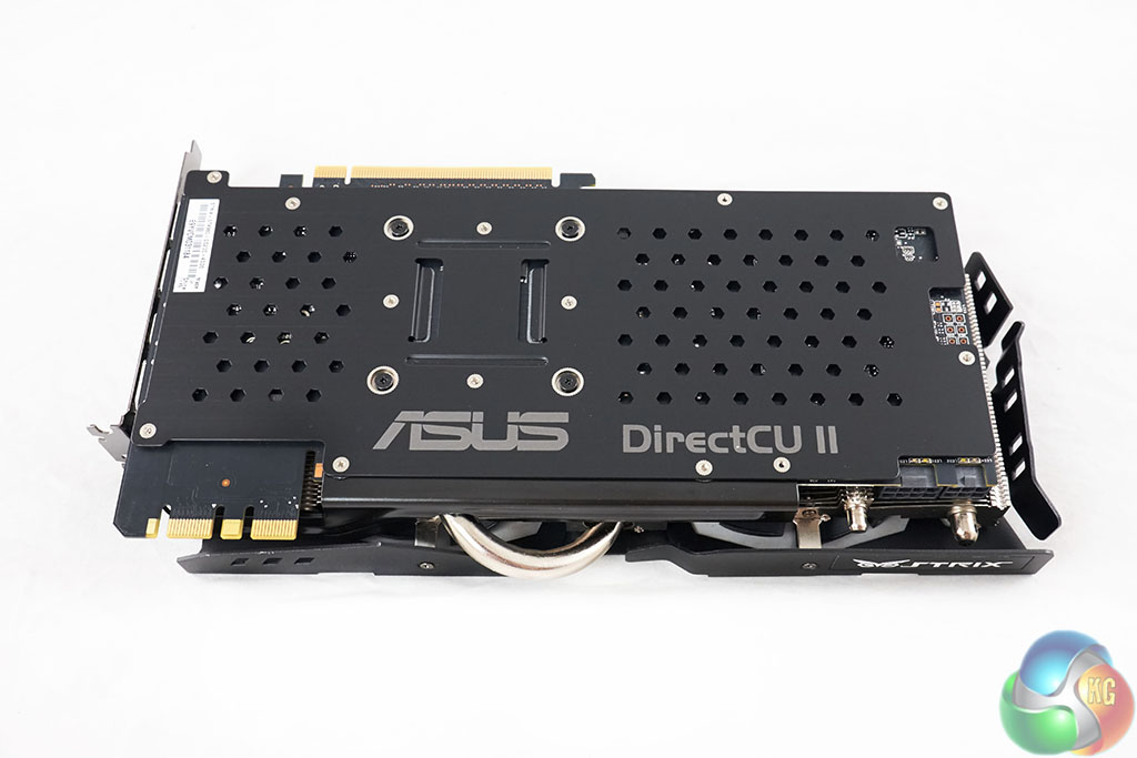 The GTX980 is built on the 28nm process. It has 2,048 Cuda Cores, 64 ROP's and 128 Texture units. The 4GB of Samsung GDDR5 is clocked at 1,753mhz (7Gbps effective) and is connected via a 256bit memory interface. The core clock speed has been increased by ASUS to 1,178mhz with a boost speed set at 1,279mhz.