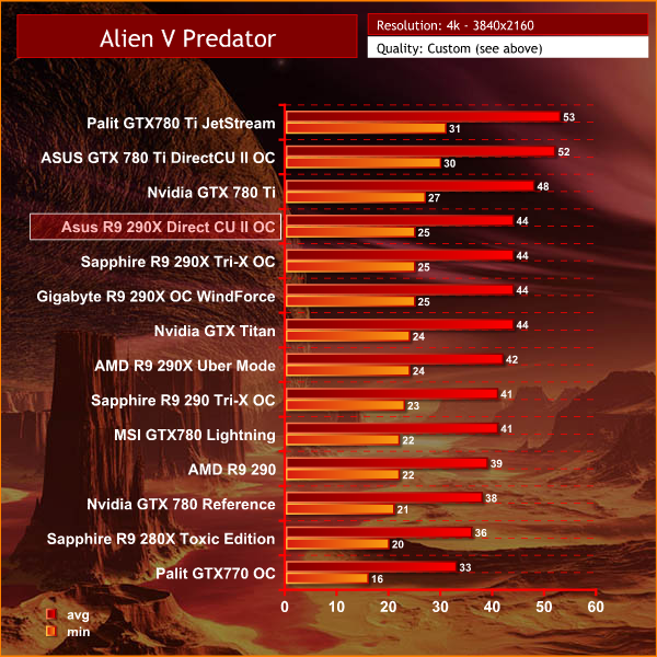A very demanding engine at Ultra HD 4k resolutions. The overclocked Asus R9 290X Direct CU II OC however manages to maintain smooth frame rates throughout, holding at 25 frames per second or better at all times.