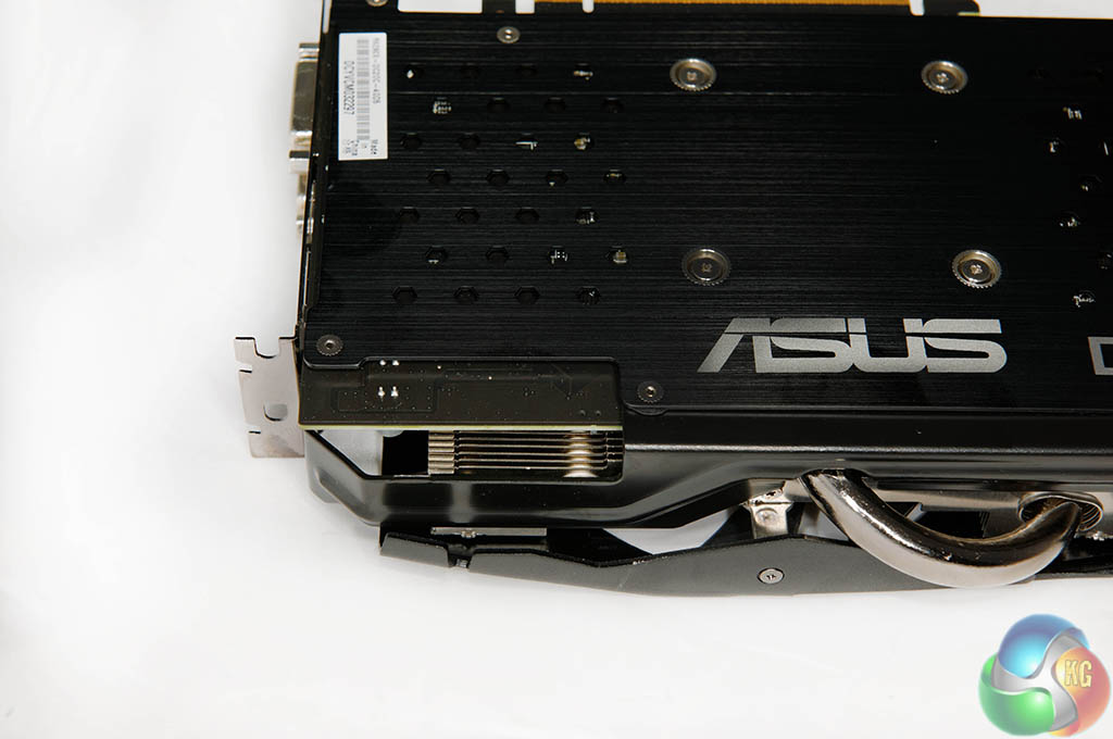 The Asus R9 290X Direct CU II is a heavy card, due to the weight of the metal heatsink and massive heatpipes. The rear of the PCB has a backplate which will help reduce operating temperatures and offer some protection.