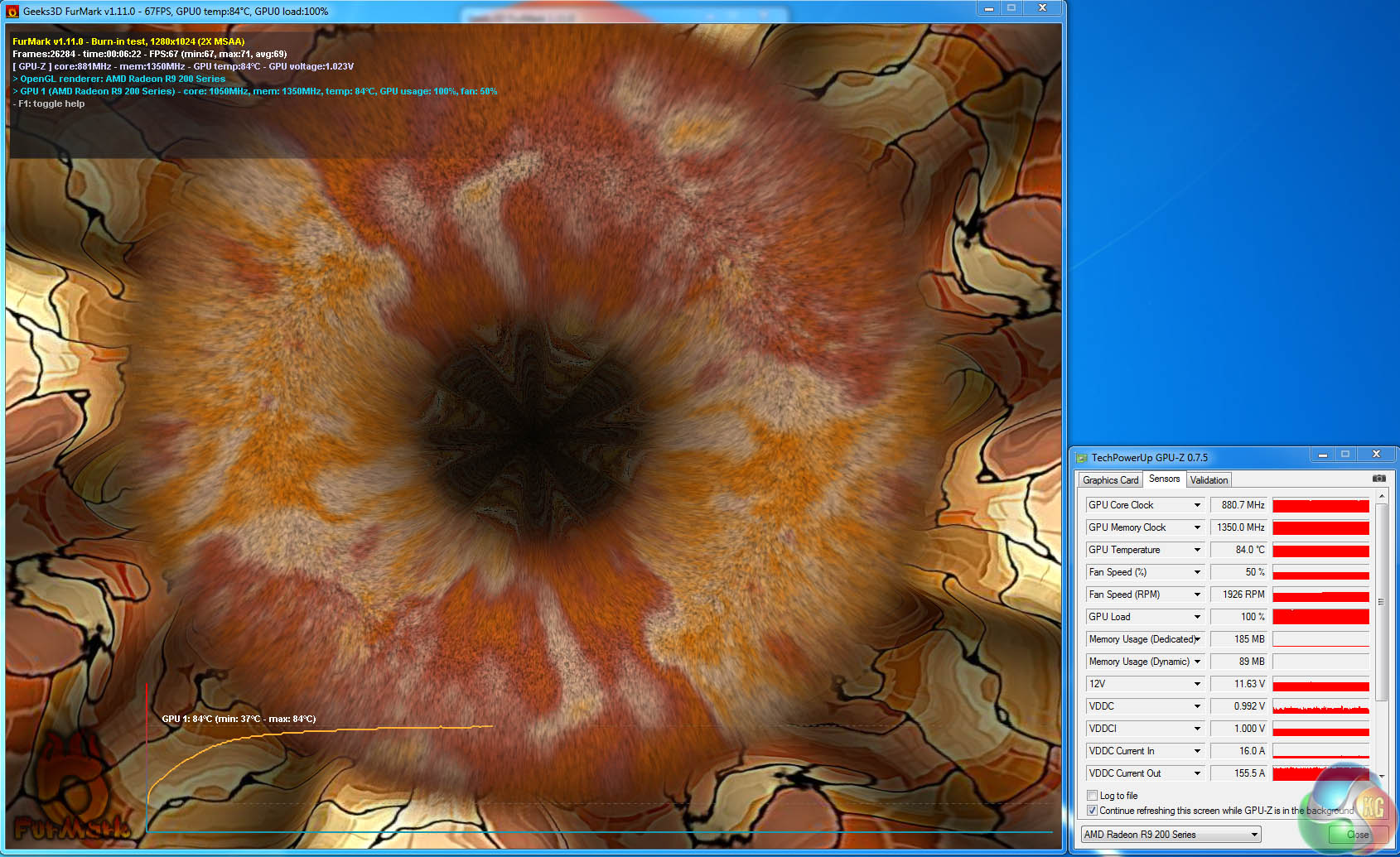 The tests were performed in a controlled air conditioned room with temperatures maintained at a constant 24c – a comfortable environment for the majority of people reading this.Idle temperatures were measured after sitting at the desktop for 30 minutes.Load measurements were acquired by playing Crysis Warhead for 30 minutes and measuring the peak temperature. We also have included Furmark results, recording maximum temperatures throughout a 30 minute stress test. All fan settings were left on automatic.