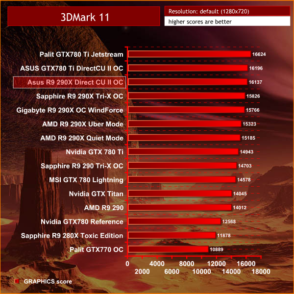 The best score yet for an AMD GPU, just behind the Asus GTX780 Ti Direct CU II OC.