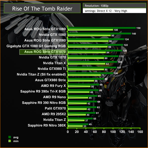 If you own a 120hz+ gaming screen then the results above are positive. The Asus Republic Of Gamers Strix GTX 1070 holds an average of 120fps, dropping to above 80 in the most intensive sections of the environment.
