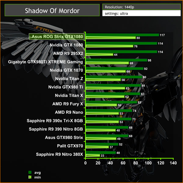 Amazing results at 1080p, averaging 117 frames per second, around 3-4 frames per second faster than the GTX 1080 Founders Edition. Complete overkill for this resolution obviously as the GTX1070 would be more than enough to cope with the engine.