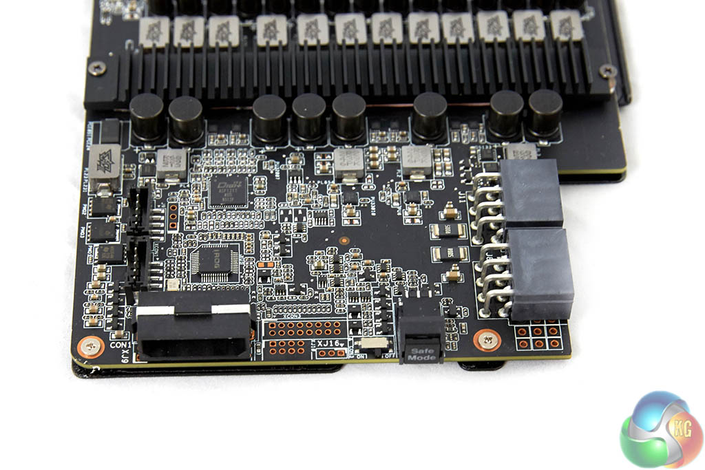 The Asus ROG Matrix GTX 980Ti Platinum Edition takes power from two eight pin connectors, as shown above.