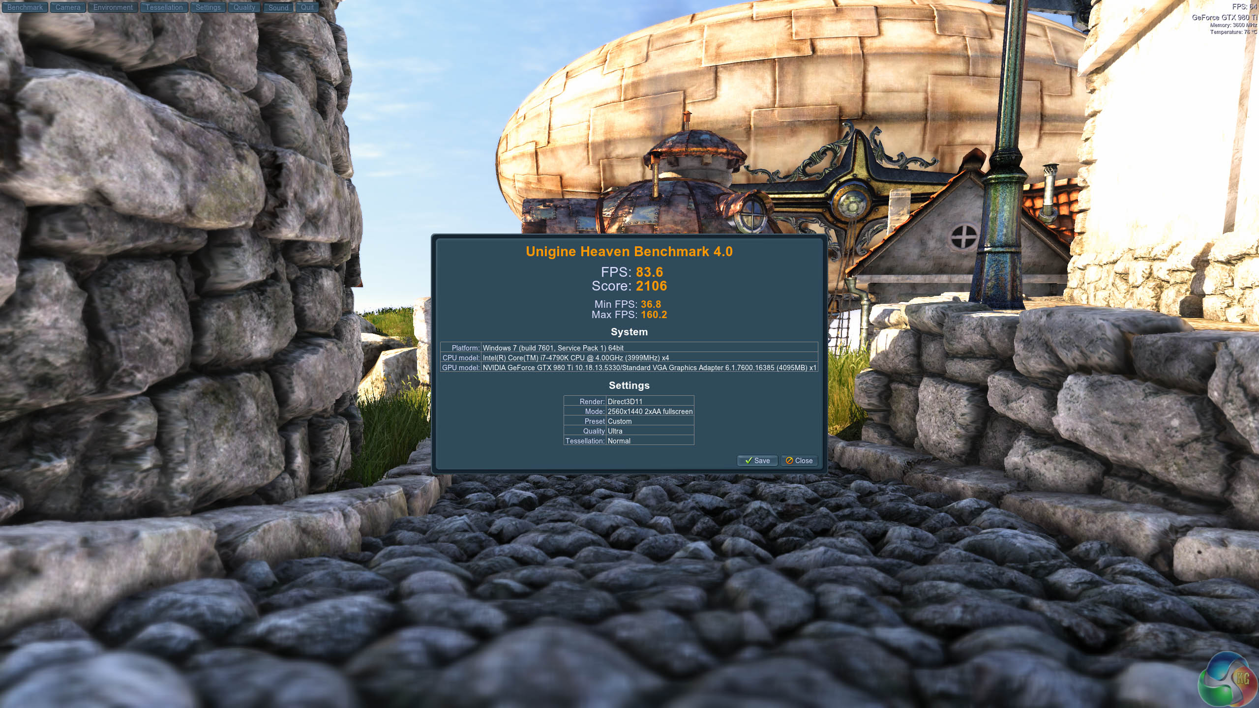 We test at 2560×1440 with quality setting at ULTRA, Tessellation at NORMAL, and Anti-Aliasing at x2.