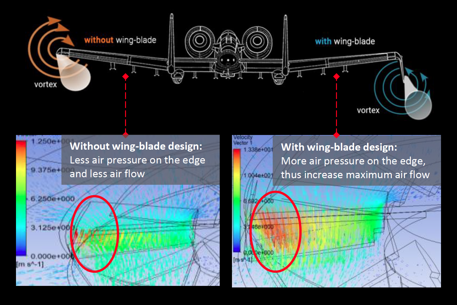 ASUS are using their patented ‘Wing-blade' fans which they say are ‘3x quieter' than the reference AMD solution. The graphic above is actually from an ASUS presentation and while the plane imagery could be considered a little corny, ASUS say that the concept was inspired by the U.S Air Force A10 attack jet.