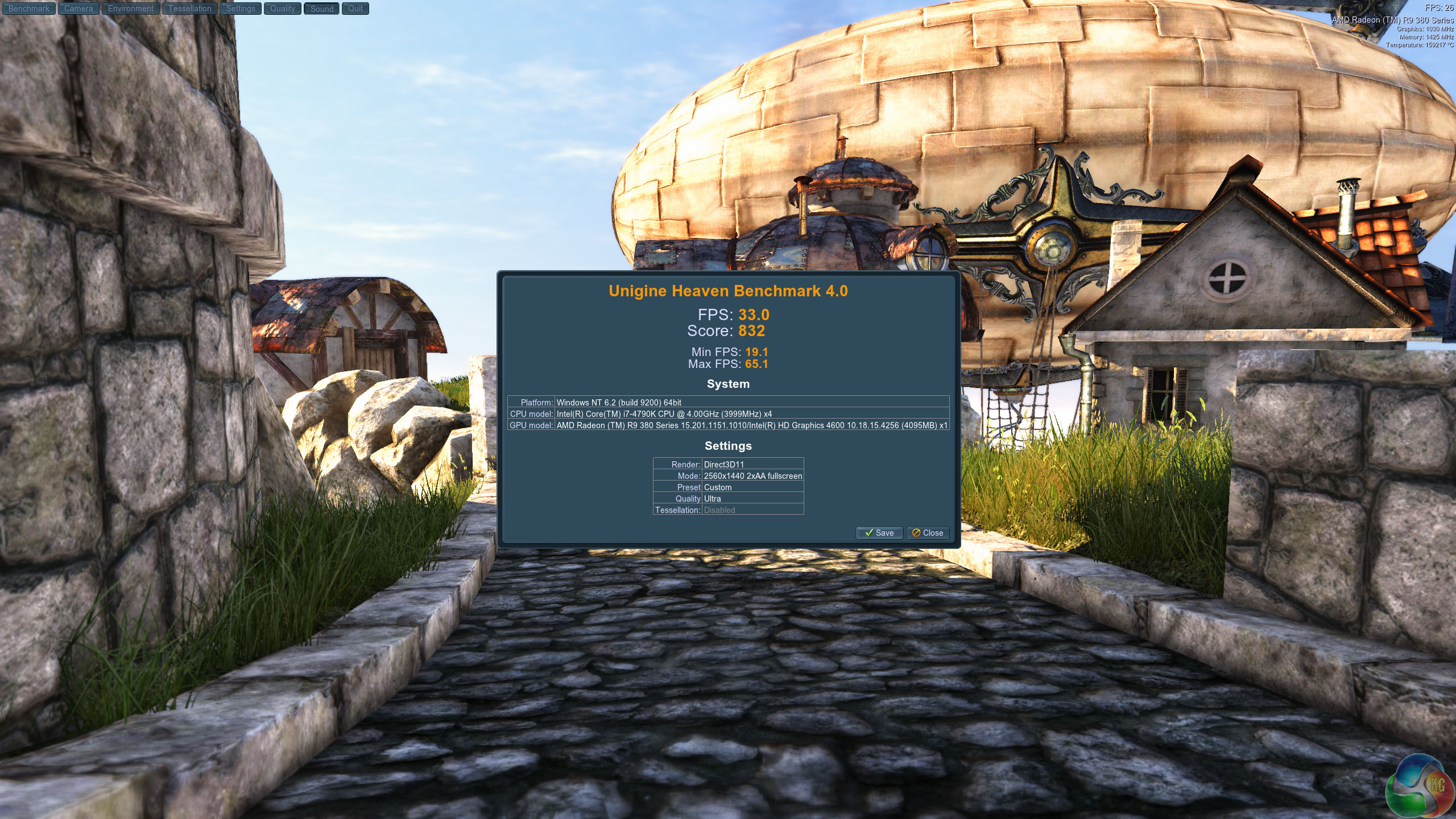 Heaven Benchmark is a DirectX 11 GPU benchmark based on advanced Unigine engine from Unigine Corp. It reveals the enchanting magic of floating islands with a tiny village hidden in the cloudy skies. Interactive mode provides emerging experience of exploring the intricate world of steampunk. Efficient and well-architected framework makes Unigine highly scalable: