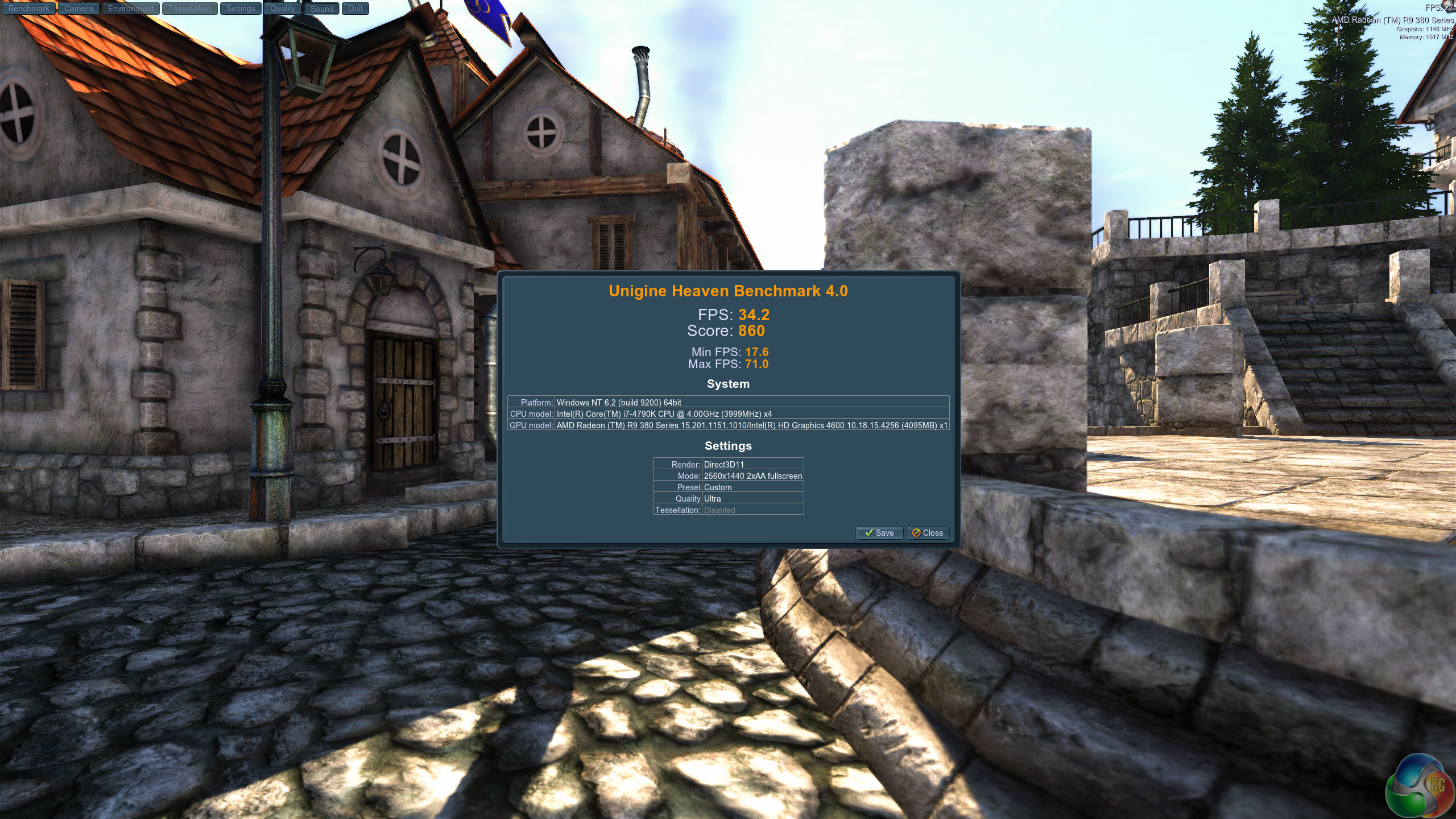We test at 2560×1440 with quality setting at ULTRA, Tessellation at NORMAL, and Anti-Aliasing at x2.