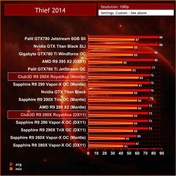 Mantle performance is slightly better in single card configurations and the R9 290/X hardware scores well in this benchmark.