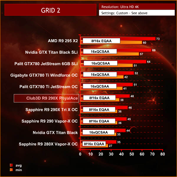 The results below therefore are NOT directly comparable. We wanted to show performance from both AMD and NVIDIA solutions in GRID 2 when maximising the image quality settings.