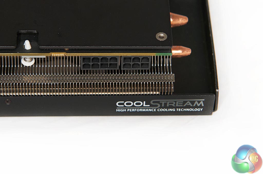 The R9 290X RoyalAce takes power from an 8 pin and a 6 pin power connector, shown above.