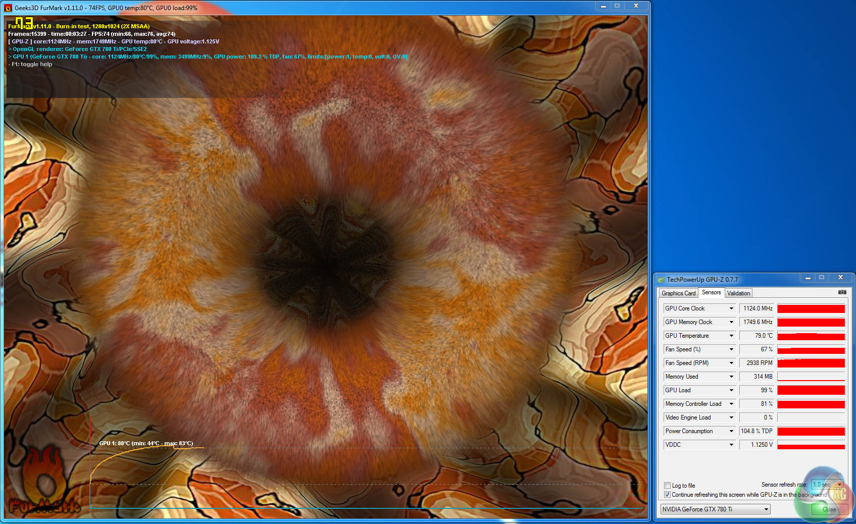 The tests were performed in a controlled air conditioned room with temperatures maintained at a constant 24c – a comfortable environment for the majority of people reading this.Idle temperatures were measured after sitting at the desktop for 30 minutes. Load measurements were acquired by playing Crysis Warhead for 30 minutes and measuring the peak temperature. We also have included Furmark results, recording maximum temperatures throughout a 30 minute stress test. All fan settings were left on automatic.