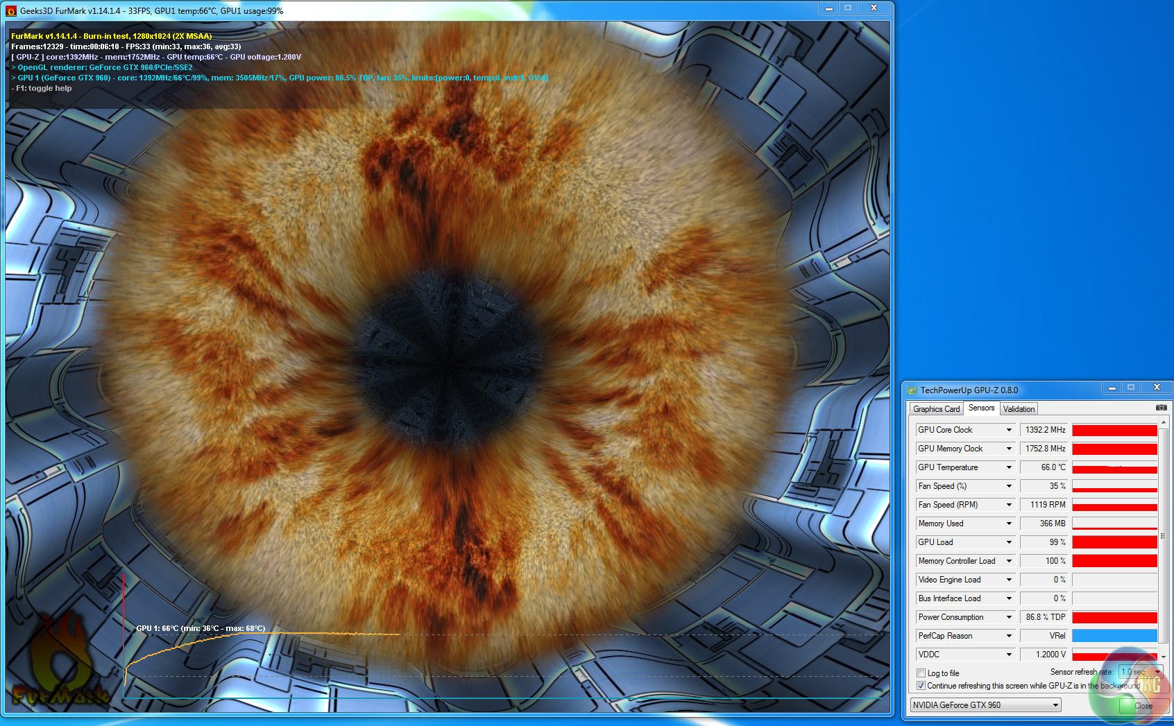 These are good results, although we noticed that the Asus GTX960 Strix OC Edition which we also tested today, runs noticeably cooler. We would therefore assume Gigabyte are putting more voltage through the card, but we will analyse this shortly.