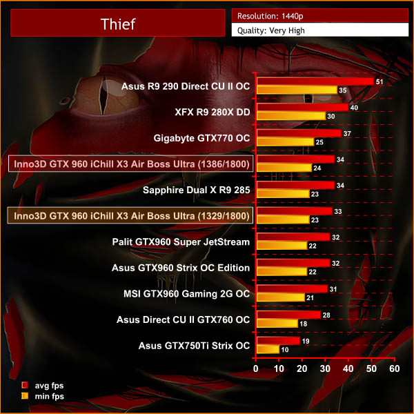 Thief is one of the more demanding engines on the market, even today. At 1080p the GTX960 cards can handle the engine fine, but at 1440p it is a tall ask and investing more money for a more powerful graphics solution would be advisable.