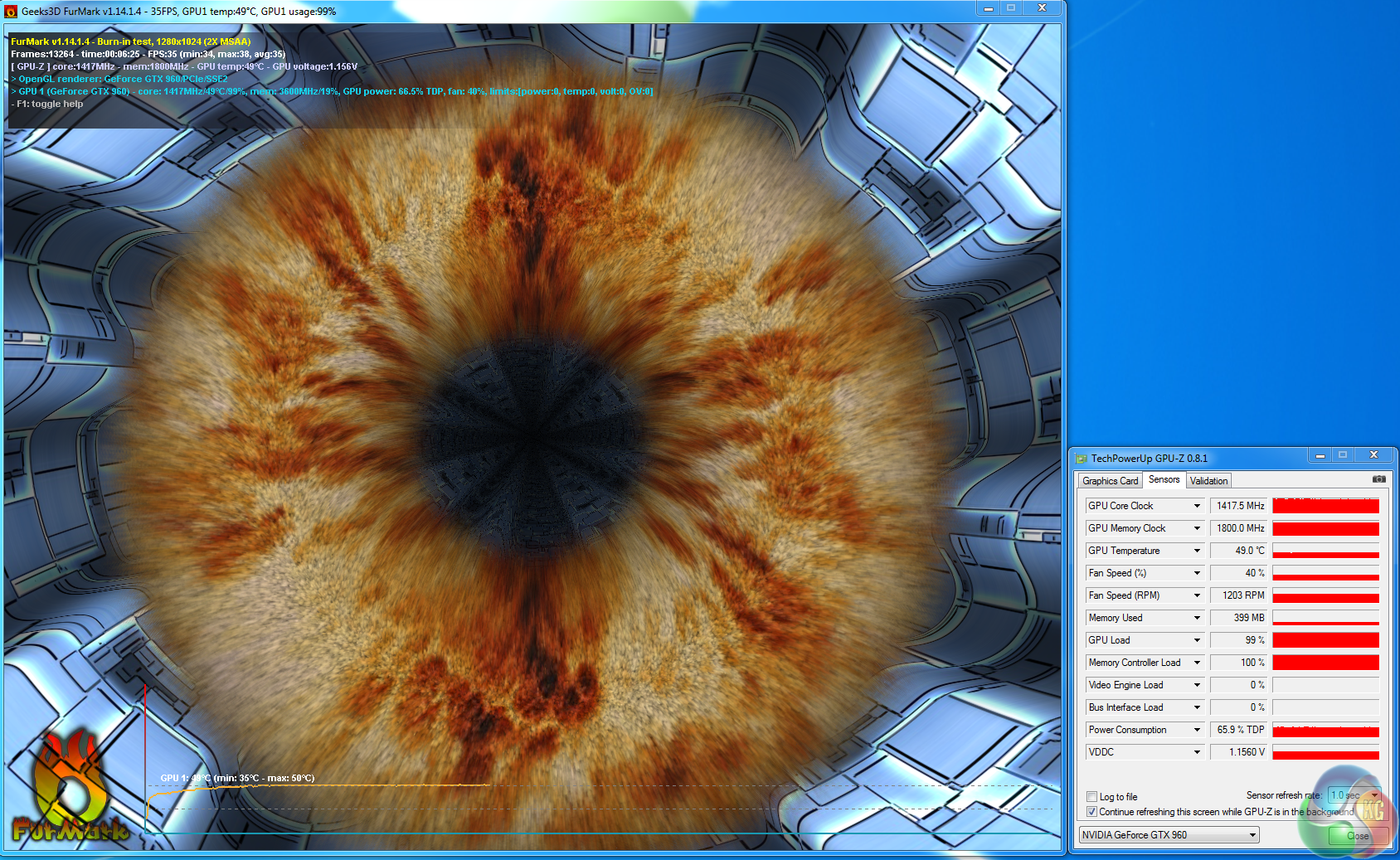 The tests were performed in a controlled air conditioned room with temperatures maintained at a constant 23c – a comfortable environment for the majority of people reading this.Idle temperatures were measured after sitting at the desktop for 30 minutes. Load measurements were acquired by playing Crysis Warhead for 30 minutes and measuring the peak temperature. We also have included Furmark results, recording maximum temperatures throughout a 30 minute stress test. All fan settings were left on automatic.