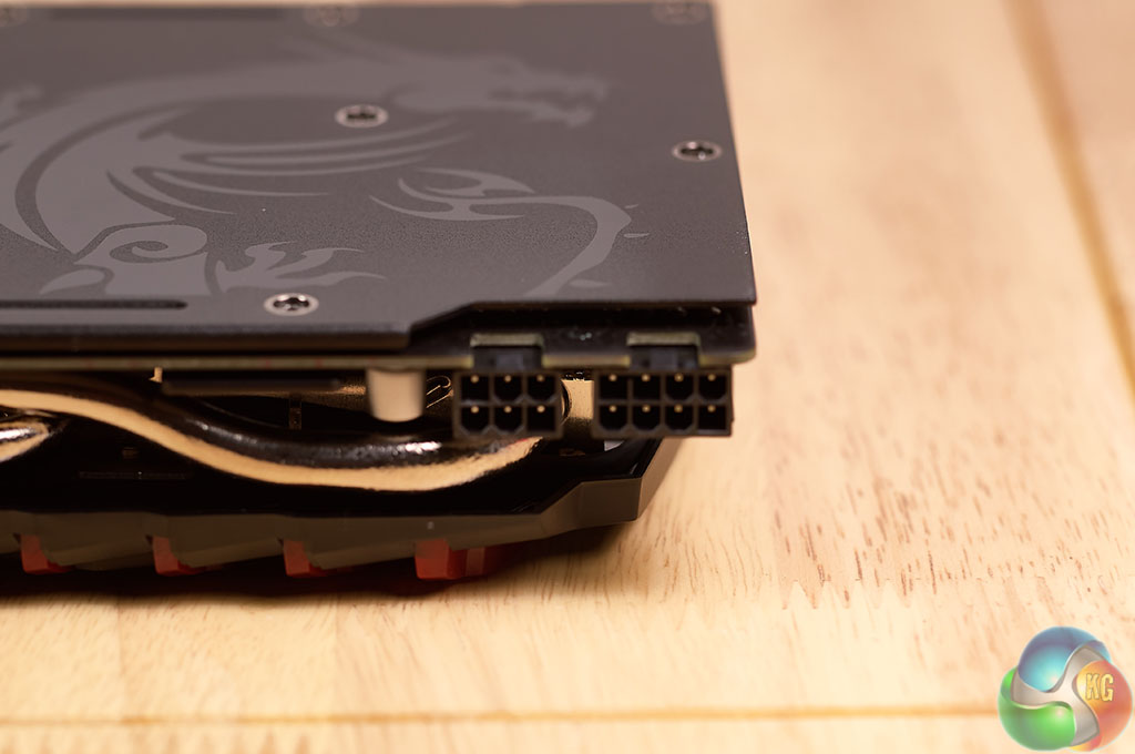 The MSI card takes power from the slot along with a single 8 pin and an extra single 6 pin (75 watt) PCIe power connector. The Gigabyte GTX 1080 G1 Gaming RGB took all the power it needed from a single 8 pin power connector, and the ASUS GTX 1080 Strix OC was equipped with two 8 Pin PCI e power connectors.