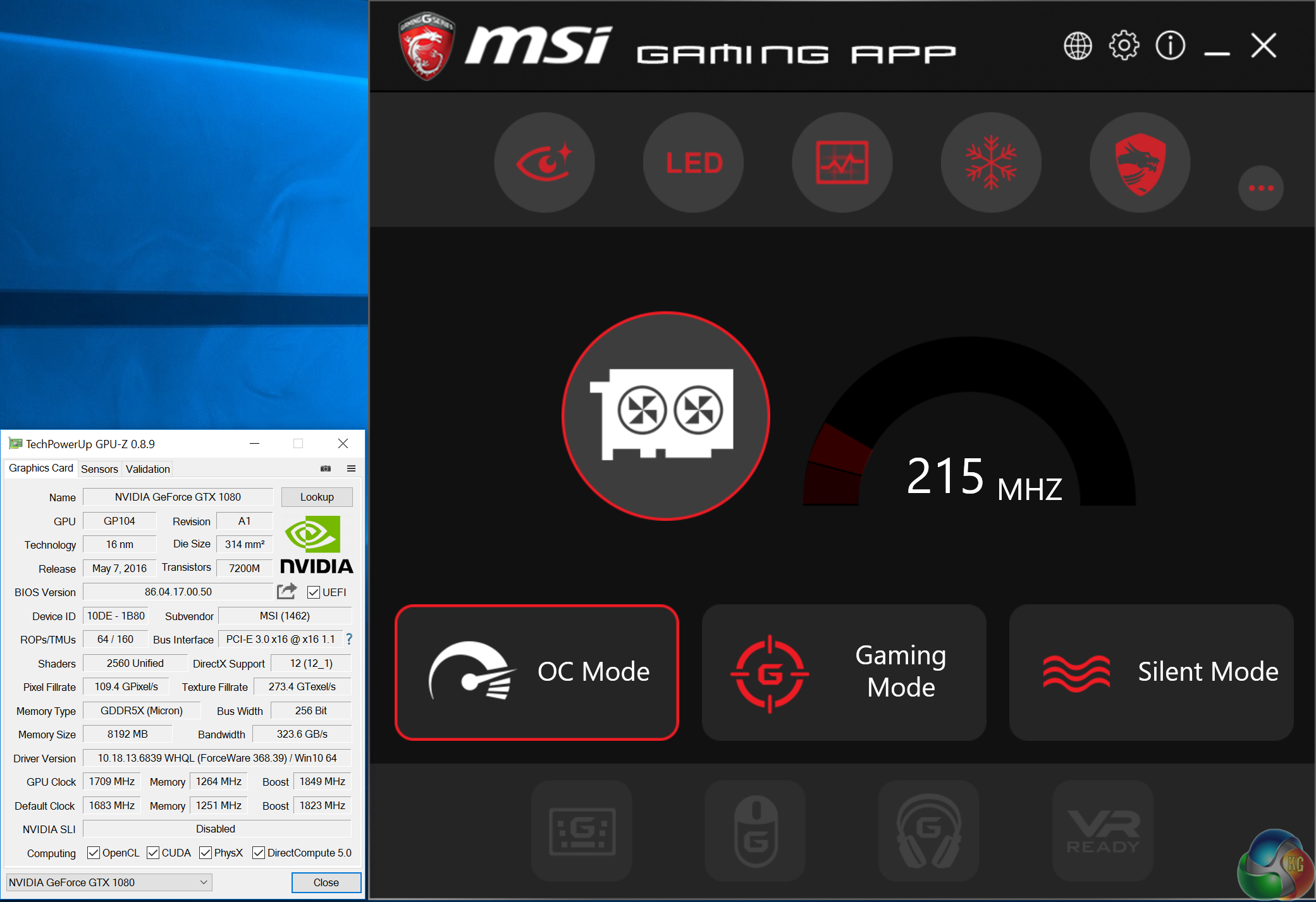 MSI include two useful software packages with the graphics card – the MSI Gaming App, and MSI Afterburner. The MSI Gaming App offers three preset clock and fan profiles, and you can also adjust LED colours and monitor the hardware.