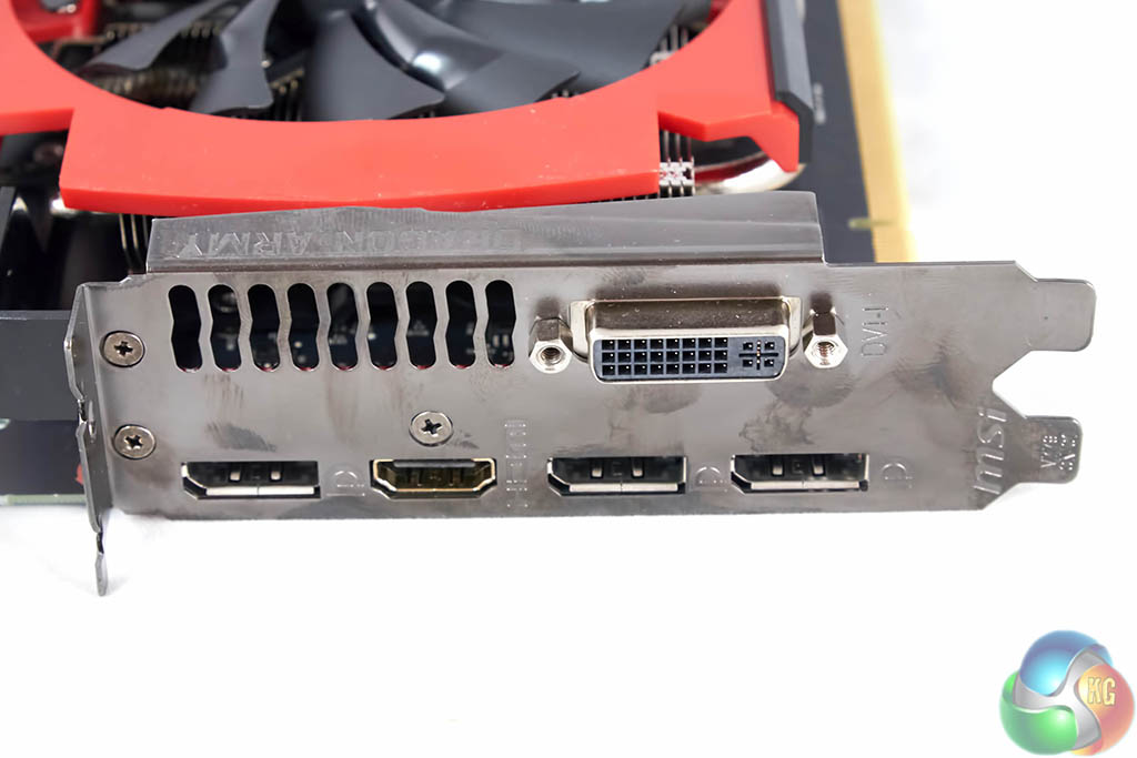 The MSI GTX980 Gaming 4G has a single DVI connector on the back (DVI-D), alongside three full sized DisplayPort connectors and a single HDMI connector. This HDMI port will handle 4K resolutions at up to 60hz. MSI earn bonus points for using full sized connectors – no silly adapters needed.