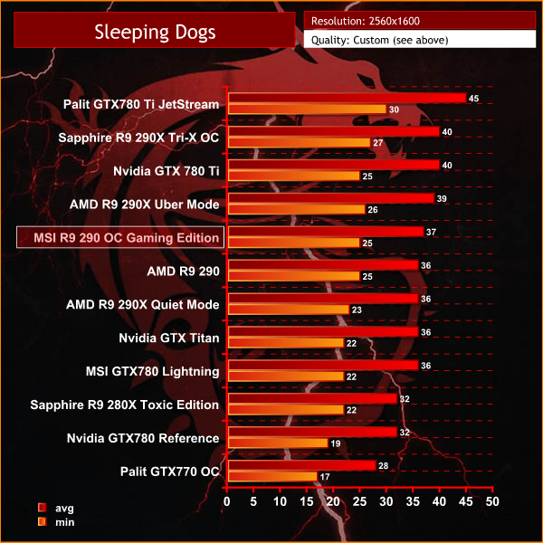 The MSI R9 290 OC Gaming Edition manages to maintain smooth frame rates, holding at 25 frames per second or greater at all times.