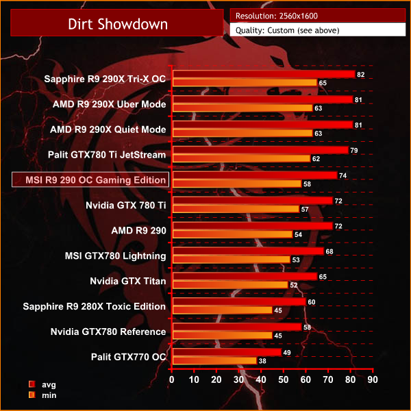 Excellent performance at 1600p, averaging 74 frames per second – around 5 frames behind the Palit GTX780 Ti JetStream.