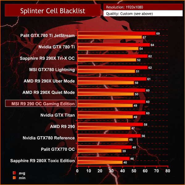 The GTX780 Ti is clearly the best solution to power this engine, although the MSI R9 290 OC Gaming Edition scores well, averaging 60 frames per second.