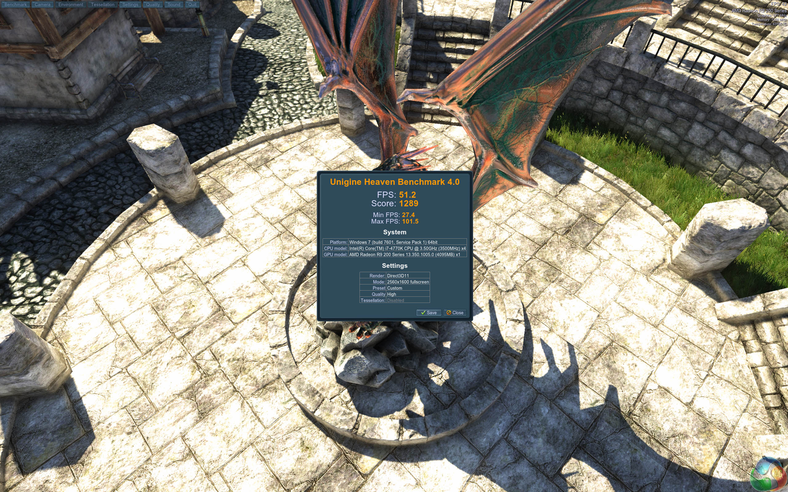 Heaven Benchmark is a DirectX 11 GPU benchmark based on advanced Unigine engine from Unigine Corp. It reveals the enchanting magic of floating islands with a tiny village hidden in the cloudy skies. Interactive mode provides emerging experience of exploring the intricate world of steampunk.