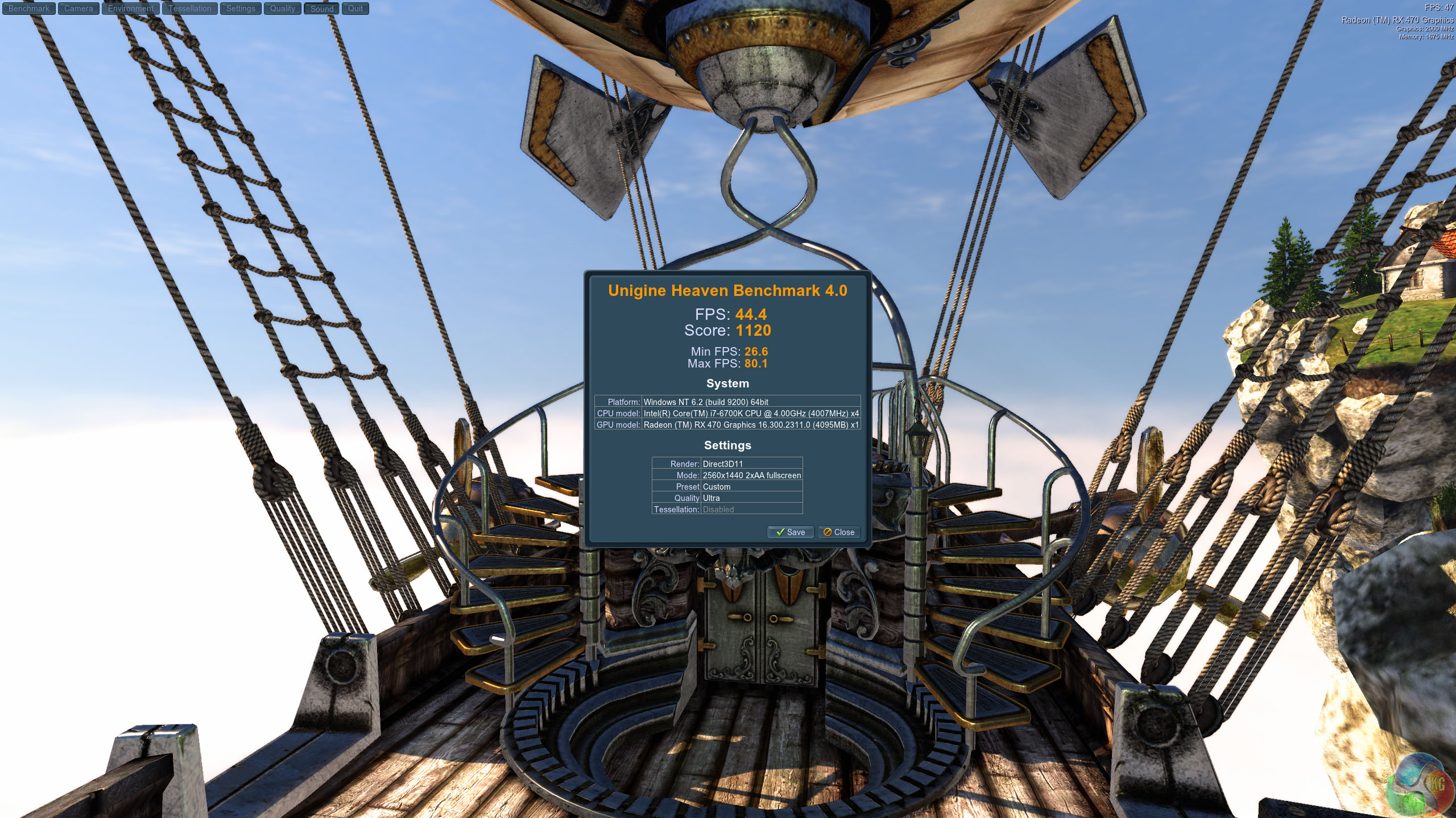 We test at 2560×1440 with quality setting at ULTRA, Tessellation at NORMAL, and Anti-Aliasing at x2.