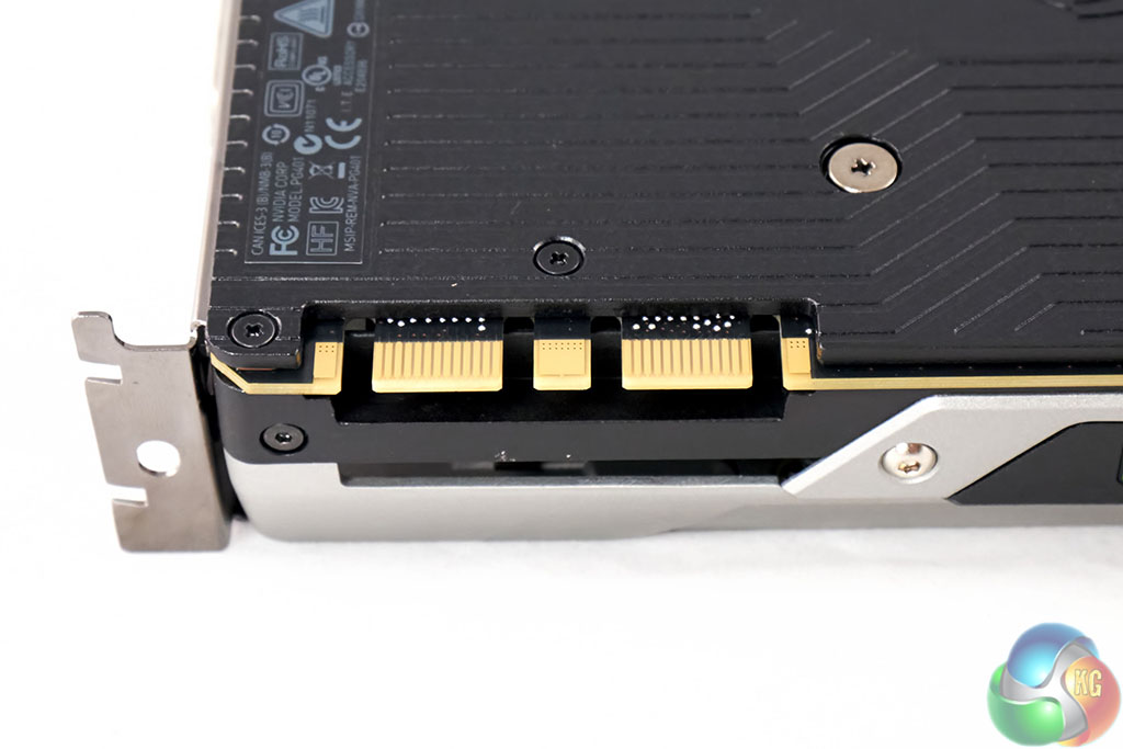 Nvidia have three DisplayPort connectors available on the I/O backplate, alongside an HDMI 2.0 capable connector. This HDMI port will handle 4K resolutions at up to 60hz. There is also a dual link DVI connector on the top row. Up to four of these output connectors can be used simultaneously.
