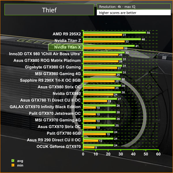 Unless you demand a constant 60 frames per second, we class Thief playable on the Titan X at 4K – frame rates are held above 30 at all times.