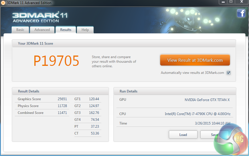 Overclocking the Titan X gave a healthy increase in performance. We recorded a score increase in 3DMark 11 from 22908 points to 25651 points – quite significant.