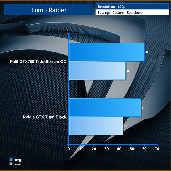 Very closely matched, with around a 2-3 frames advantage for the Palit GTX780 Ti JetStream.