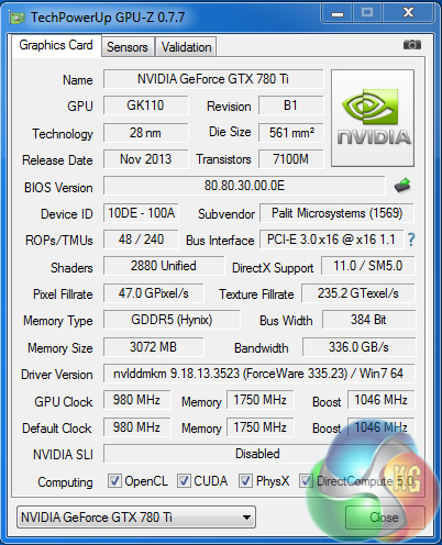 Above – GPUz screenshots of the Nvidia GTX Titan Black and the Palit GTX 780 Ti Jetstream OC.