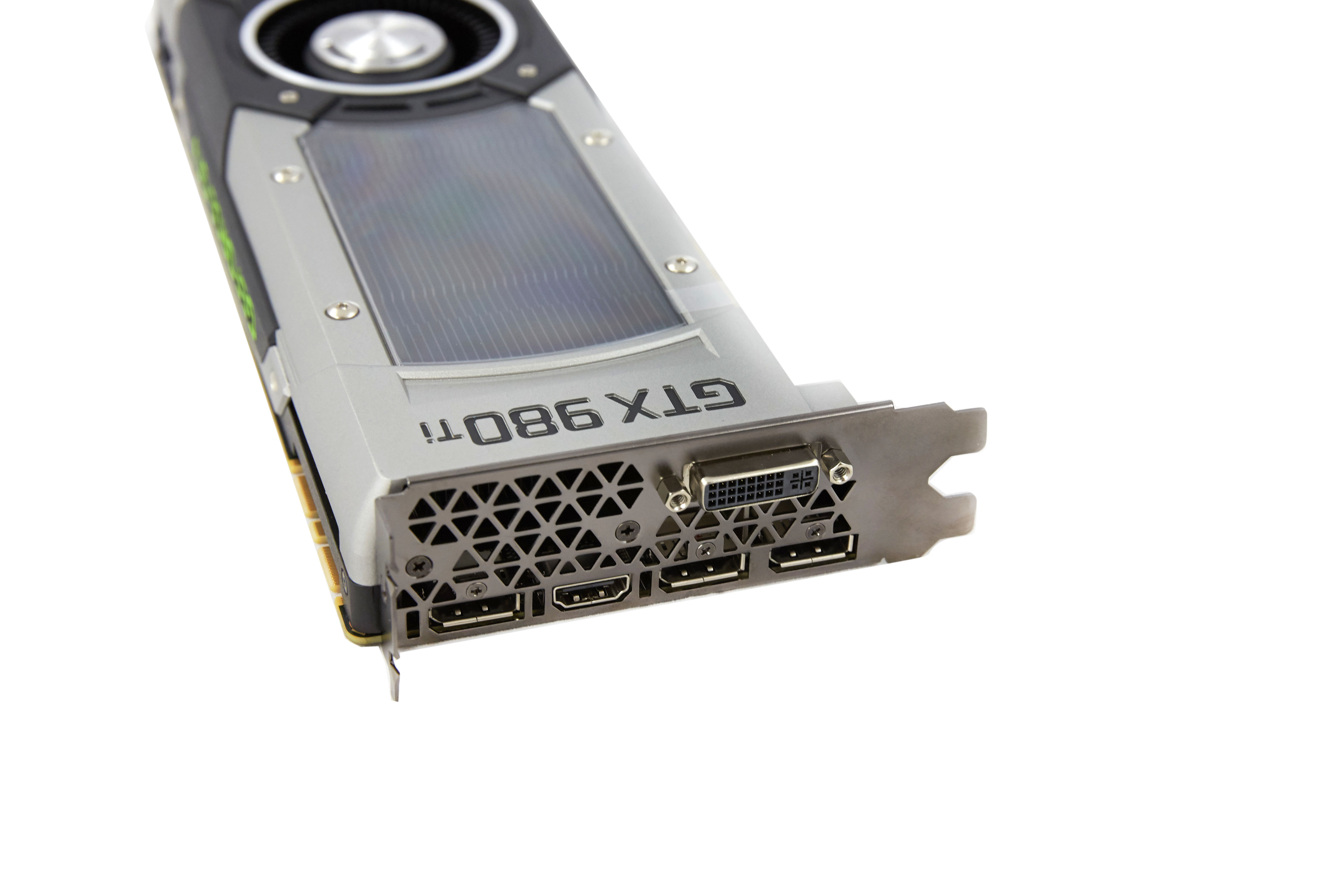 The GTX980 Ti ships with a single DVI port, one HDMI 2.0 port (with HD audio and Blu-Ray 3D movie support), and three DisplayPorts. The move to predominately Displayport connectivity is inevitable and welcomed. If you wish, you can use all these ports at the same time for triple monitor gaming.