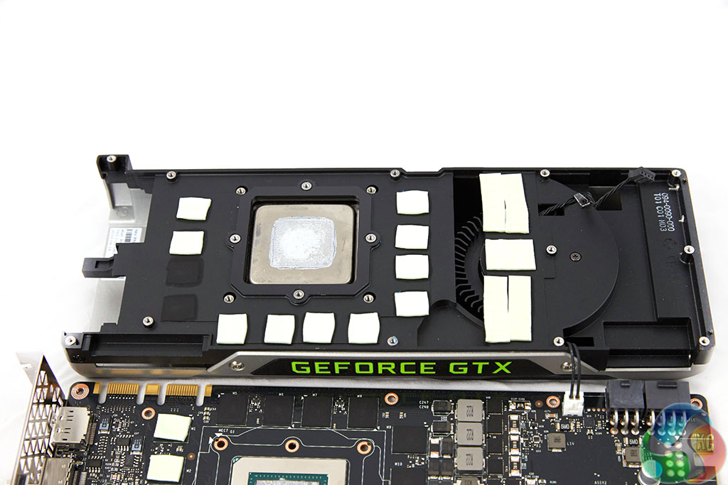 The reference cards are always cooled by a single fan, as shown above. The fan spins and forces hot air out of the rear of the case. These cards can work much better than custom air cooled partner cards when configured in SLi. Due to the cooler design, less expelled heat will radiate vertically inside a case.