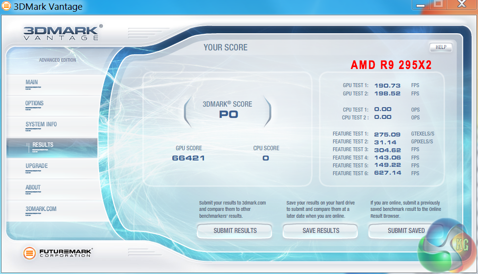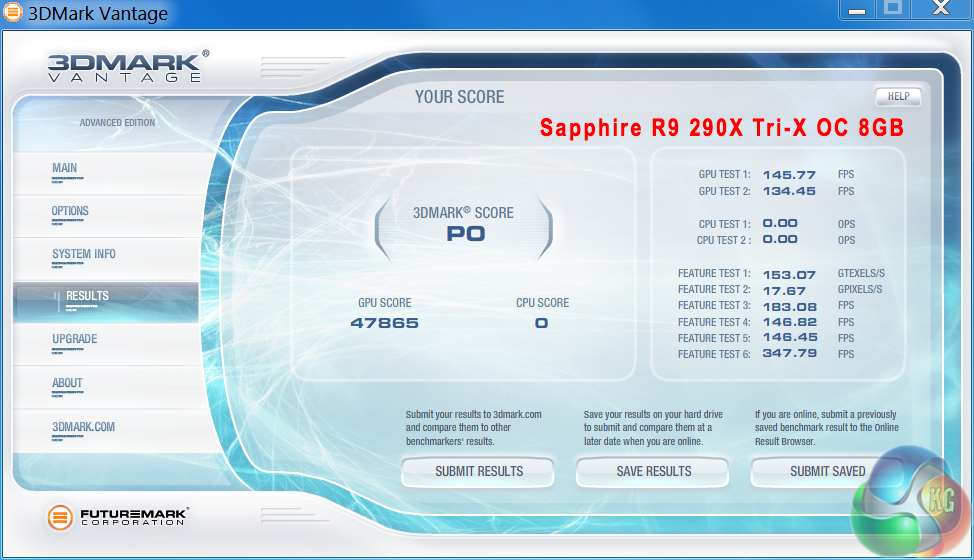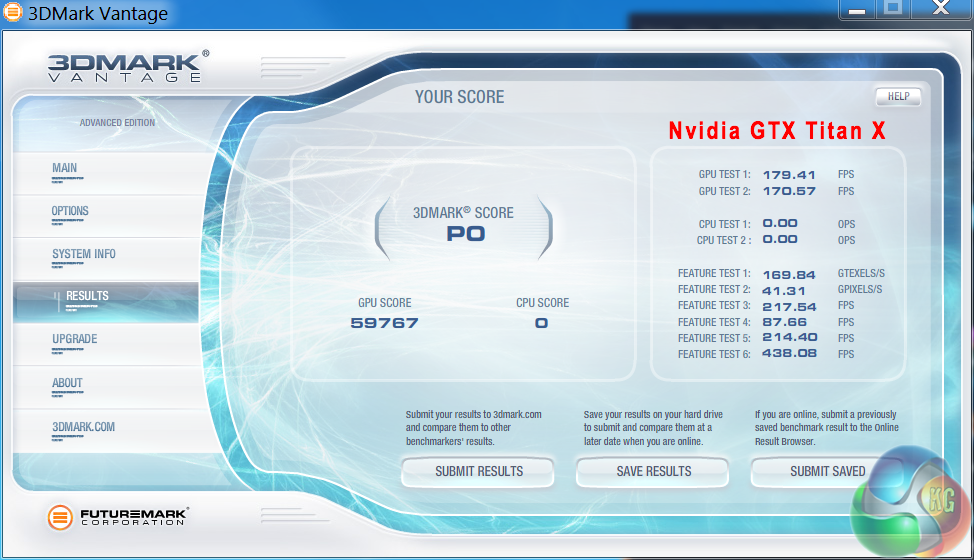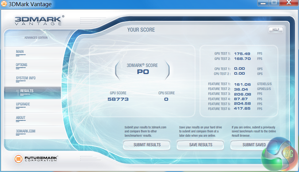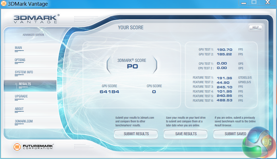Futuremark released 3DMark Vantage, on April 28, 2008. It is a benchmark based upon DirectX 10, and therefore will only run under Windows Vista (Service Pack 1 is stated as a requirement) and Windows 7. This is the first edition where the feature-restricted, free of charge version could not be used any number of times. 1280×1024 resolution was used with performance settings.