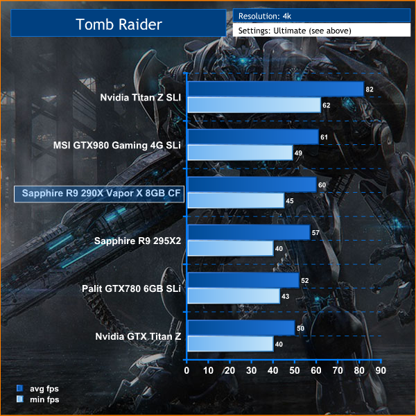 We test at Ultra HD 4k resolution with the ‘Ultra' image profile enabled. Single GPU solutions find the ‘Ultimate' image quality preset too difficult to power properly.