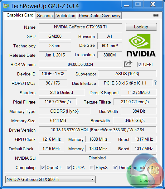 ASUS STRIX Gaming GTX 980 Ti DirectCU 3 (1,216 mhz core / 1800mhz memory)