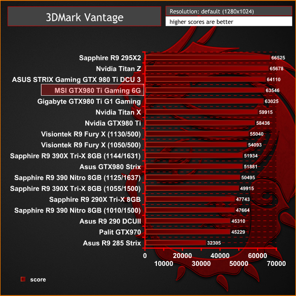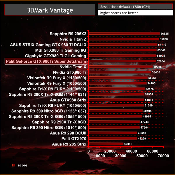 The Palit GeForce GTX 980Ti Super Jetstream scores very closely against the Gigabyte GTX980 T1 G1 Gaming, scoring 62,864 points. We know this benchmark is old now, but it gives a good indication of Direct X 10 game performance.
