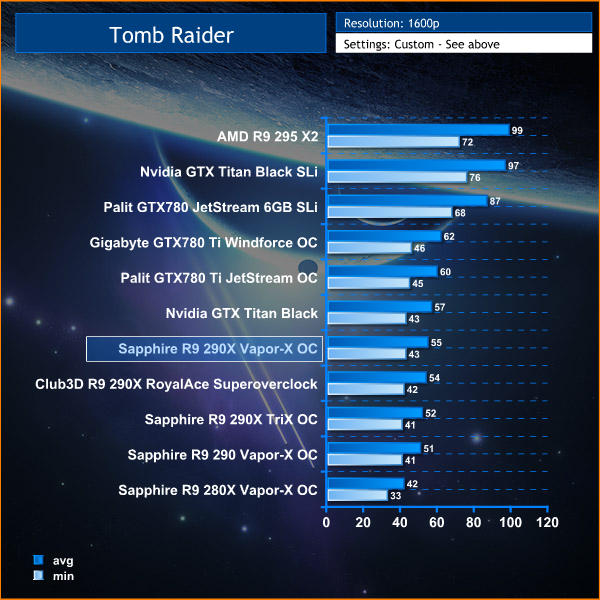 Frame rates drop significantly when the resolution is increased from 1080p to 1600p. Still the top solutions still have no issues holding 60+ frame rates at all times.