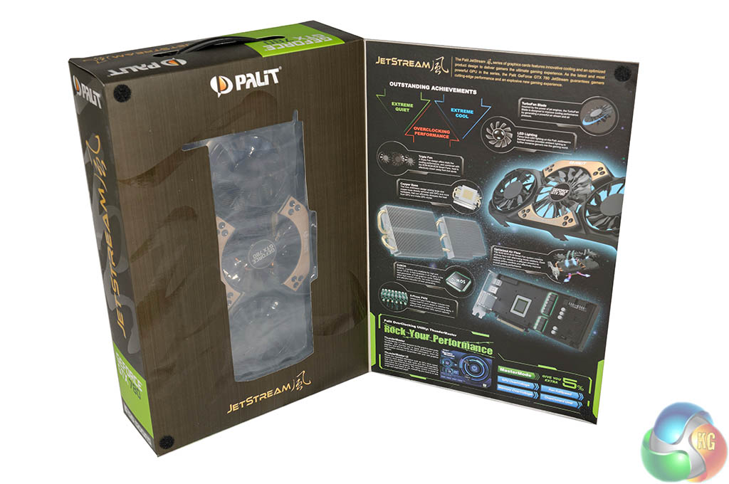 The Palit GTX780 Jetstream 6GB arrives in a rather bland looking box with no images of the actual product. The main focus is clearly on the 6GB of GDDR5 memory.