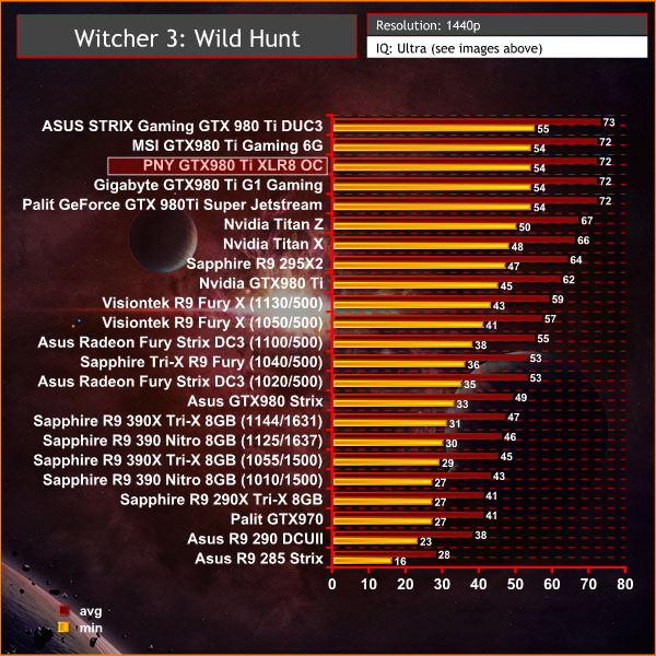 The Witcher 3: Wild Hunt is a great game and it runs very well on Nvidia cards. Of particular interest today are the improved results from the AMD R9 295X2 – finally AMD have fixed the Crossfire profile, even if it seems to have taken an inordinate amount of time. It doesn't quite outperform the Titan X at 1440p, but we expect better results at 4K on the next page.