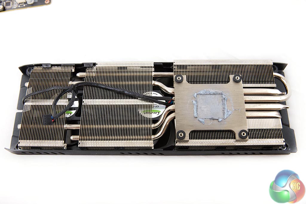 The PNY cooler is comprised of 4 thick heatpipes which run the full length of the card, into not two but three separate heatsinks.