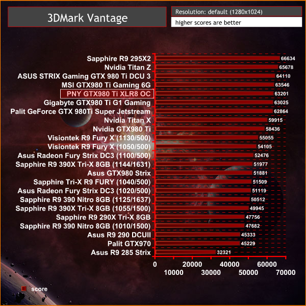 The PNY GTX980 Ti XLR8 OC scores as we would expect, scoring 63,201 points, slotting in behind the MSI GTX980 Ti Gaming 6G.